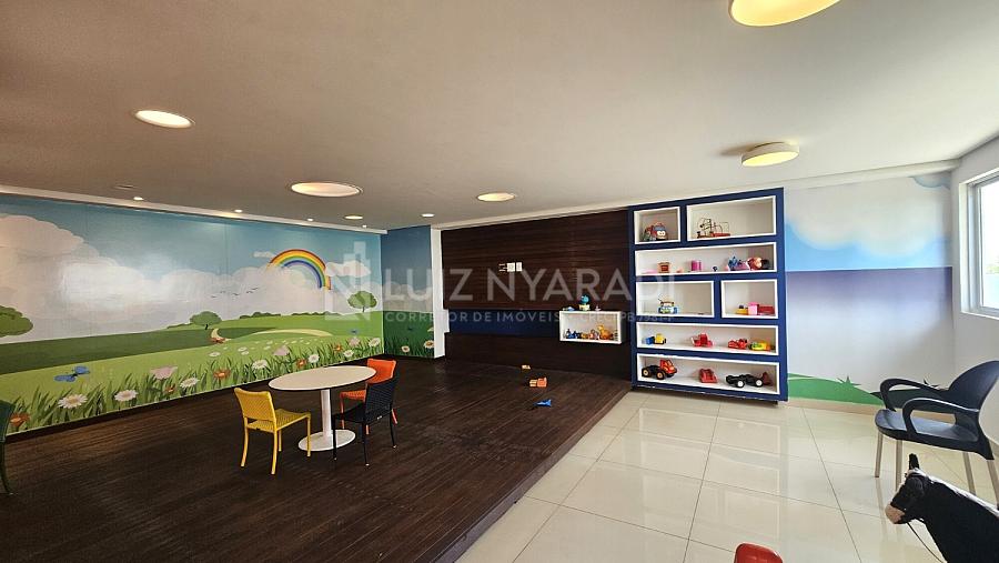 Lazer Completo: Piscina, churrasqueira, cinema, academia, salão de festas, playground, jardim, salão de beleza e quadra poliesportiva.