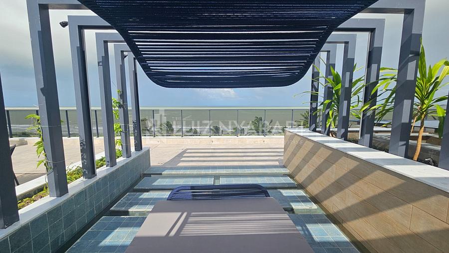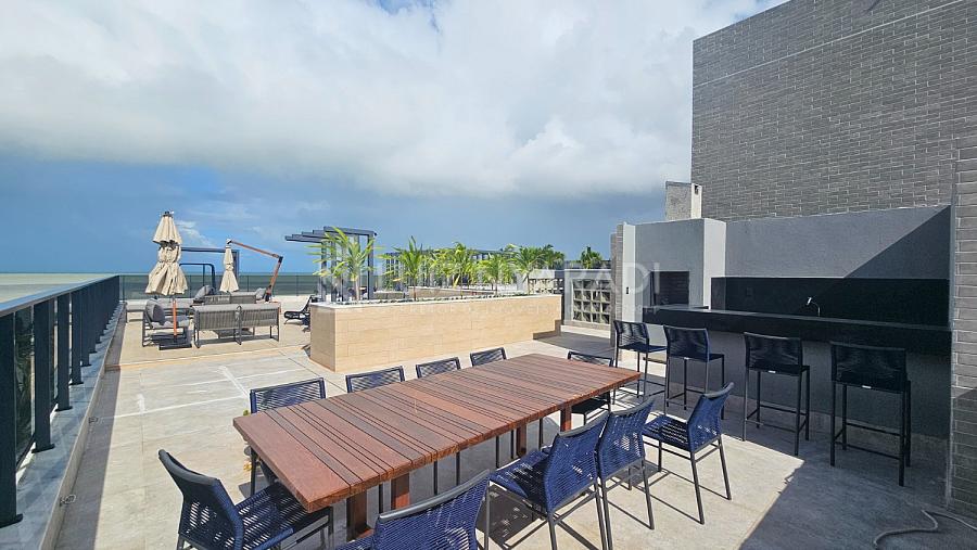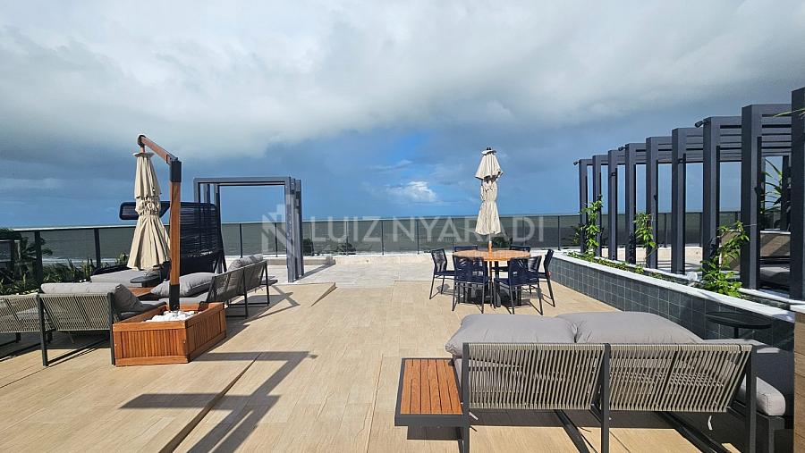 > Piscina na cobertura com vista para o mar;