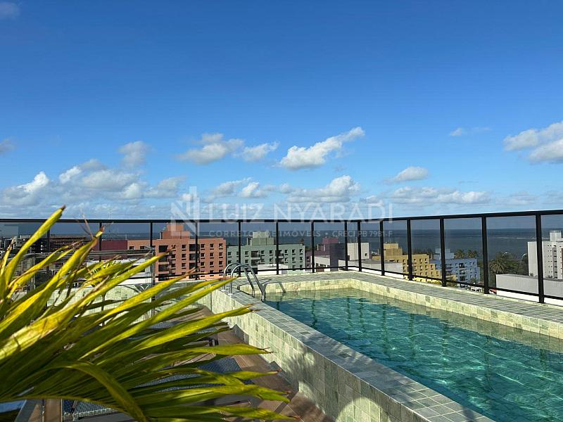 Flat em Ponta de Campina mobiliado e rentabilizando, com vista mar em posição Nascente.